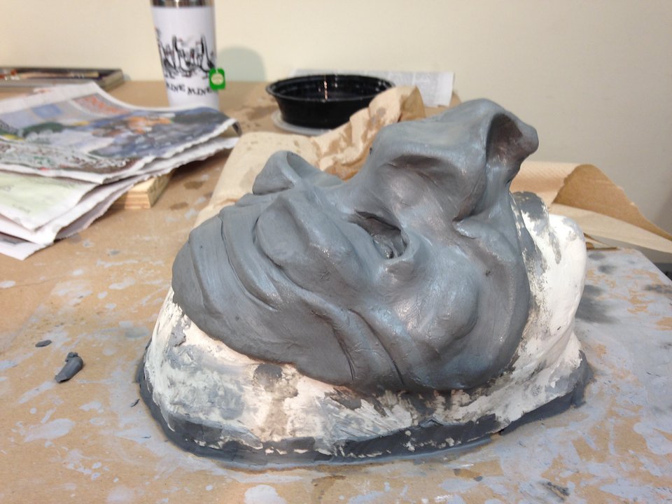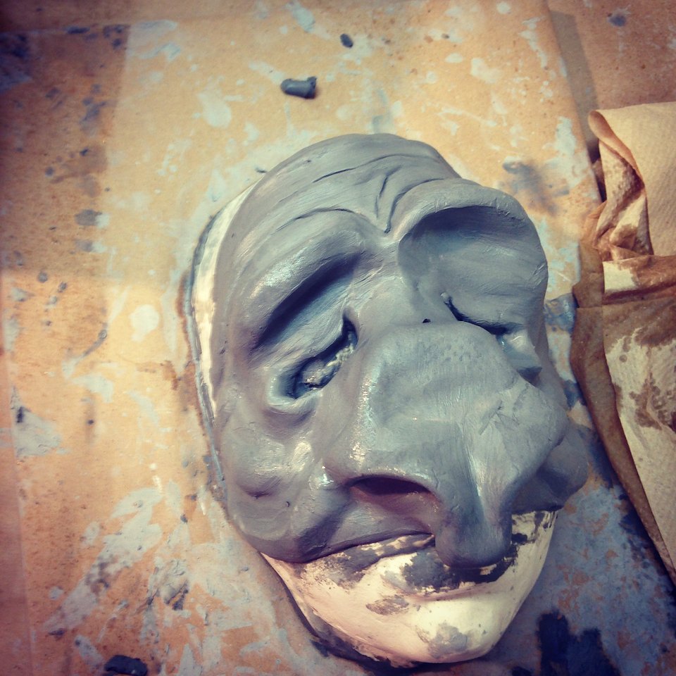 Papier Mache clay sculpt for Mandrill Carnival mask.
