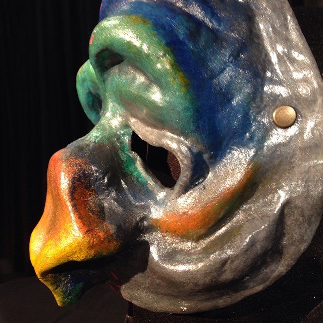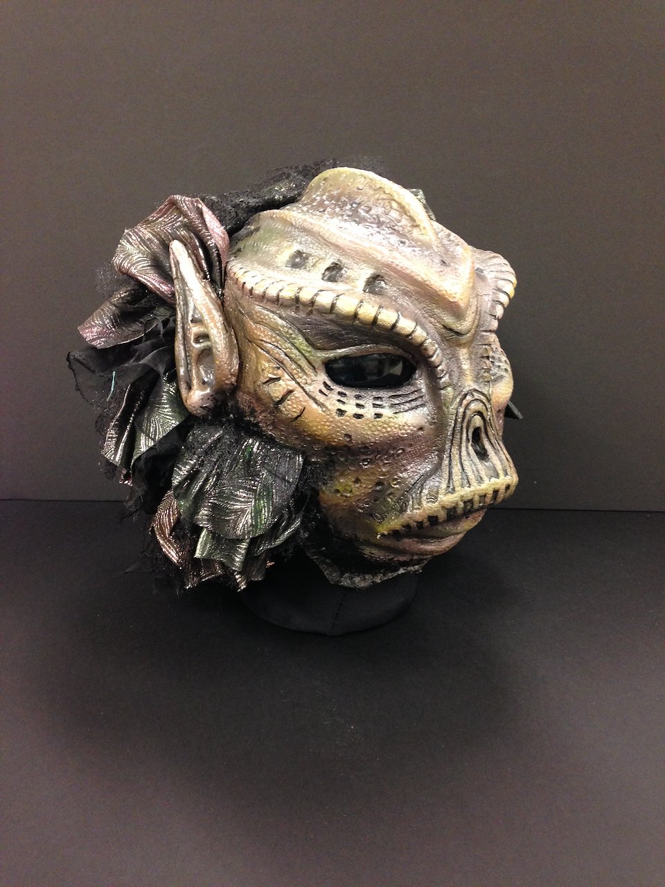 Finished sea creature mask. Latex, airbrushed acrylic and fabric.