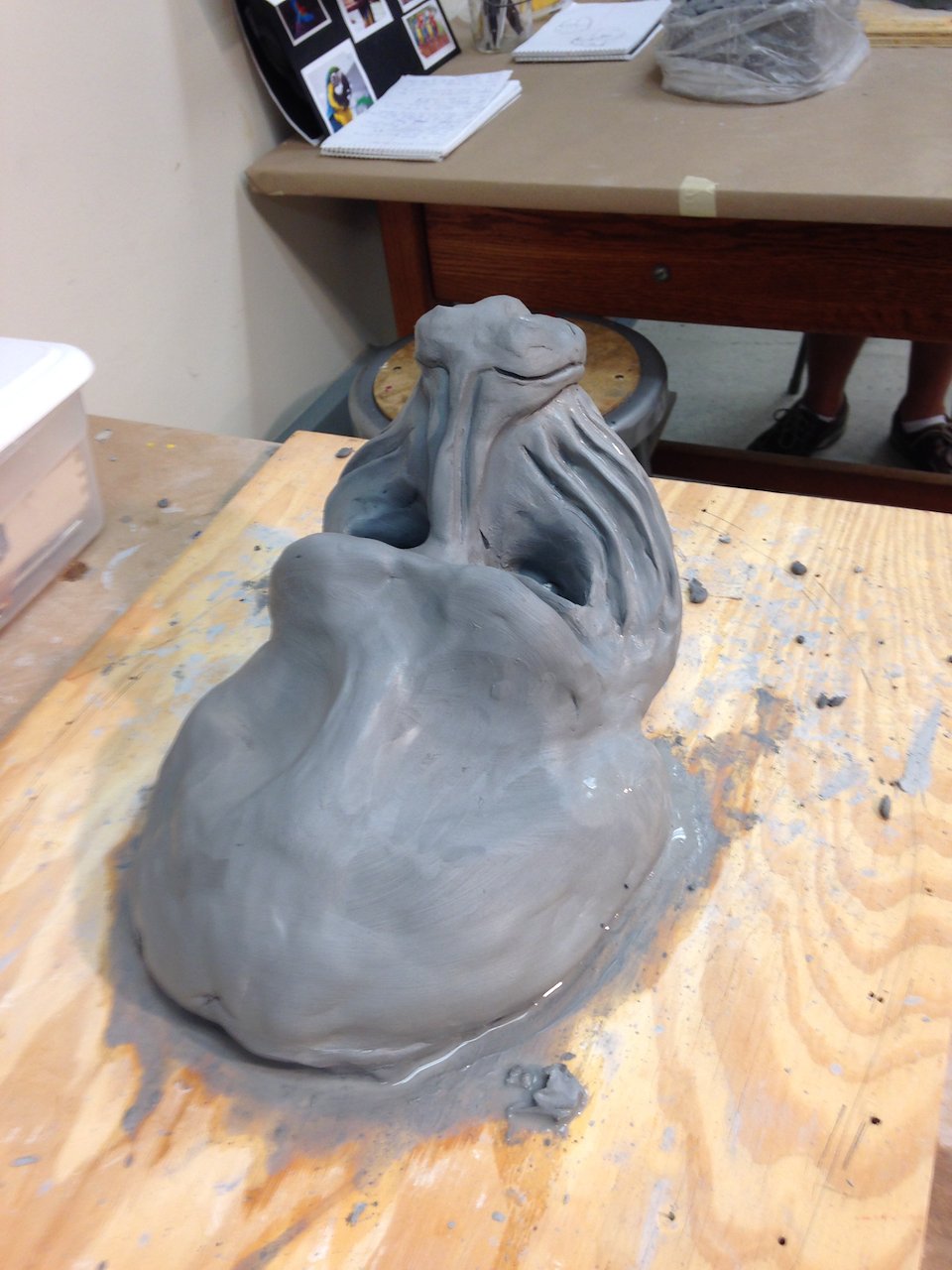 Finished sculpt for sea creature in clay walls for plaster cast.