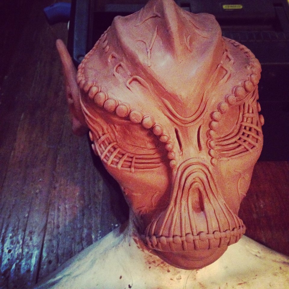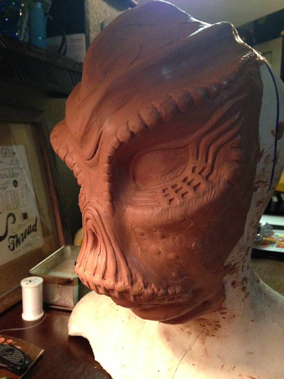 Finished sculpt for for sea creature mask. Plasteline clay.